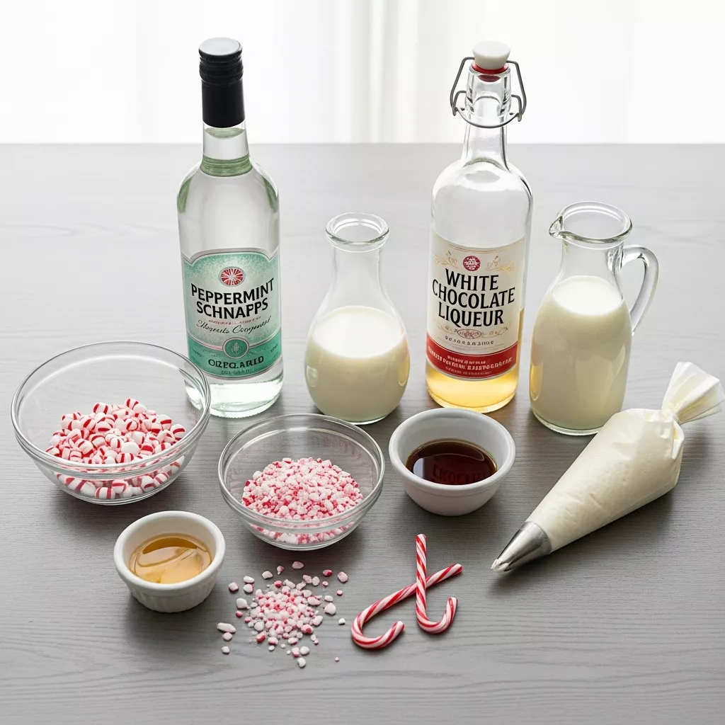 1. Prepare the shot glasses: Spread a thin layer of corn syrup on a small plate. On another small plate, spread crushed peppermint candies. Dip the rim of each shot glass in the corn syrup, then immediately dip into the crushed peppermint candies to coat the rim.