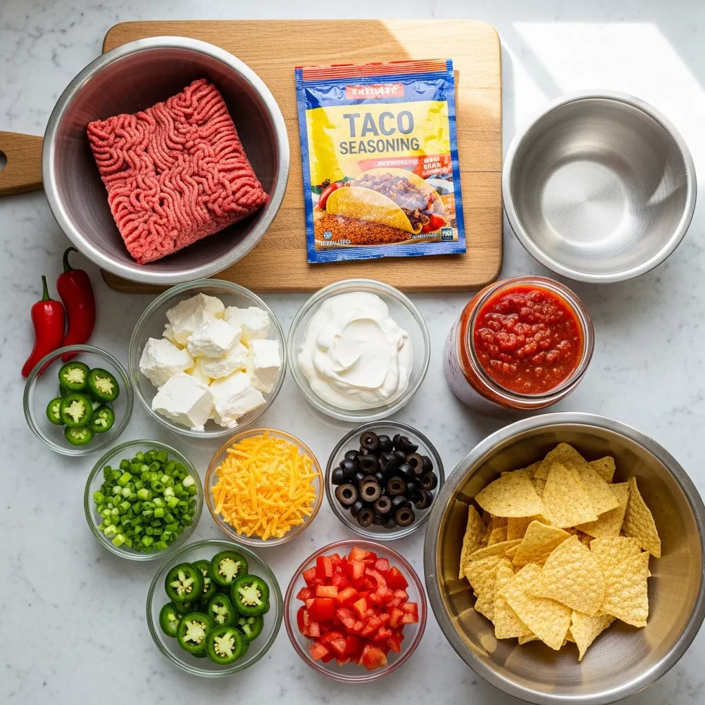 Texas trash dip makes every moment feel uplifting. Brown the ground beef in a skillet over medium heat. Drain any excess grease, then stir in the taco seasoning and cook for another 2-3 minutes, until heated through. Set aside to cool slightly.